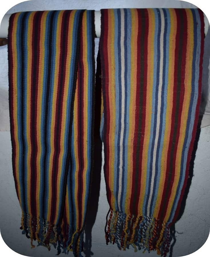 Tejido a mano con colores  naturales, que representan al arcoíris realizado  en lana de oveja.